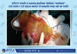 Các bác sĩ chuyên khoa Sản Phụ Khoa BVXA vừa phẫu thuật một khối u hiếm gặp, kích thước “khủng” chứa 7 lít dịch nhầy nằm trong buồng trứng bệnh nhân.